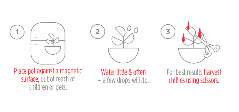 A great idea from chilies growers to combine growing your own chilies with Scandinavian design inspired magnetised pots that can be fixed on to your fridge door giving your kitchen a lovely touch.
